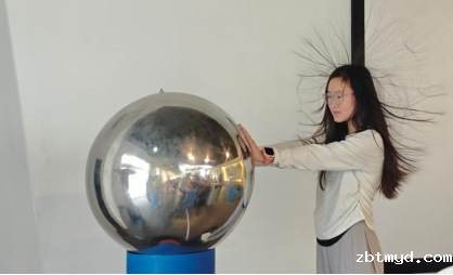 “怒发冲冠”静电体验区笑声不断。孩子们勇敢地站上绝缘台,手扶静电发生球,随着电荷不断累积,头发纷纷直立飞扬,现场惊呼与欢笑此起彼伏。