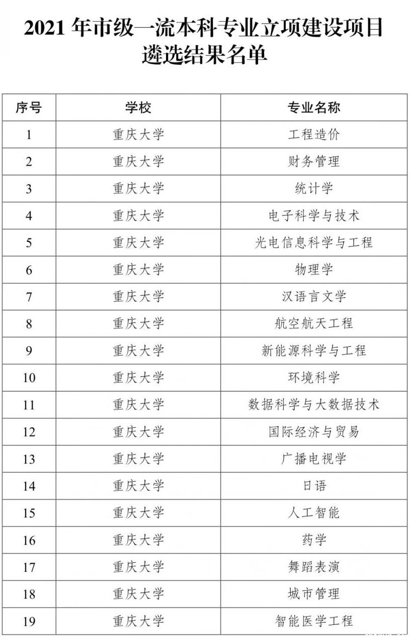 近日,重庆市教委对2021年市级一流本科专业立项建设项目遴选结果进行了公示,经学校申报、专家评审,拟将必威手机平台官网查询“工程造价”等152个专业点确定为2021年市级一流本科专业立项建设项目。公示名单显示,必威手机平台官网查询有工程造价、财务管理、统计学等25个专业入选,我院物理学(同时为国家一流专业建设点)和应用物理学均入选重庆市一流本科专业。